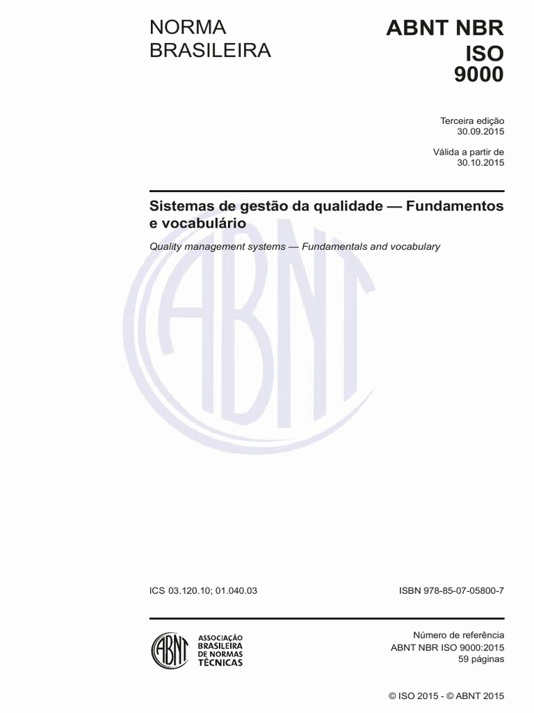 Abnt Nbr Iso 9000 2015 Abnt Catalogo Pdf Overview and Information
