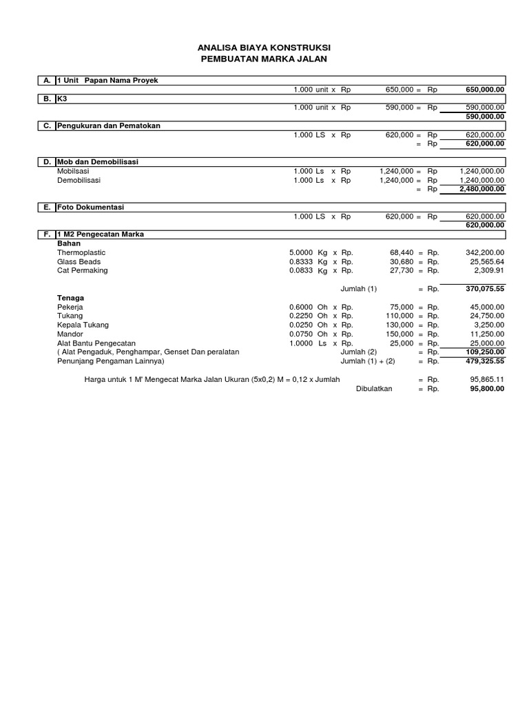 Analisa Harga Satuan Pekerjaan Bidang Pekerjaan Umum Detailed Analysis