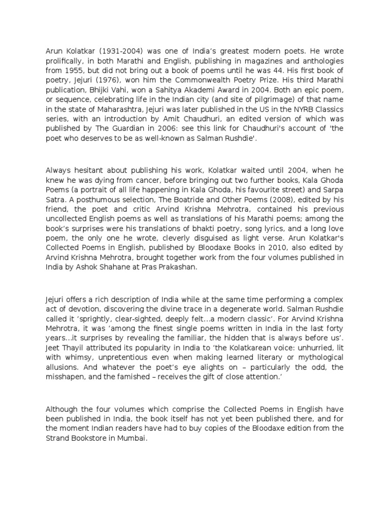 Arun Kolatkar And Literary Modernism In India Mov Detailed Analysis