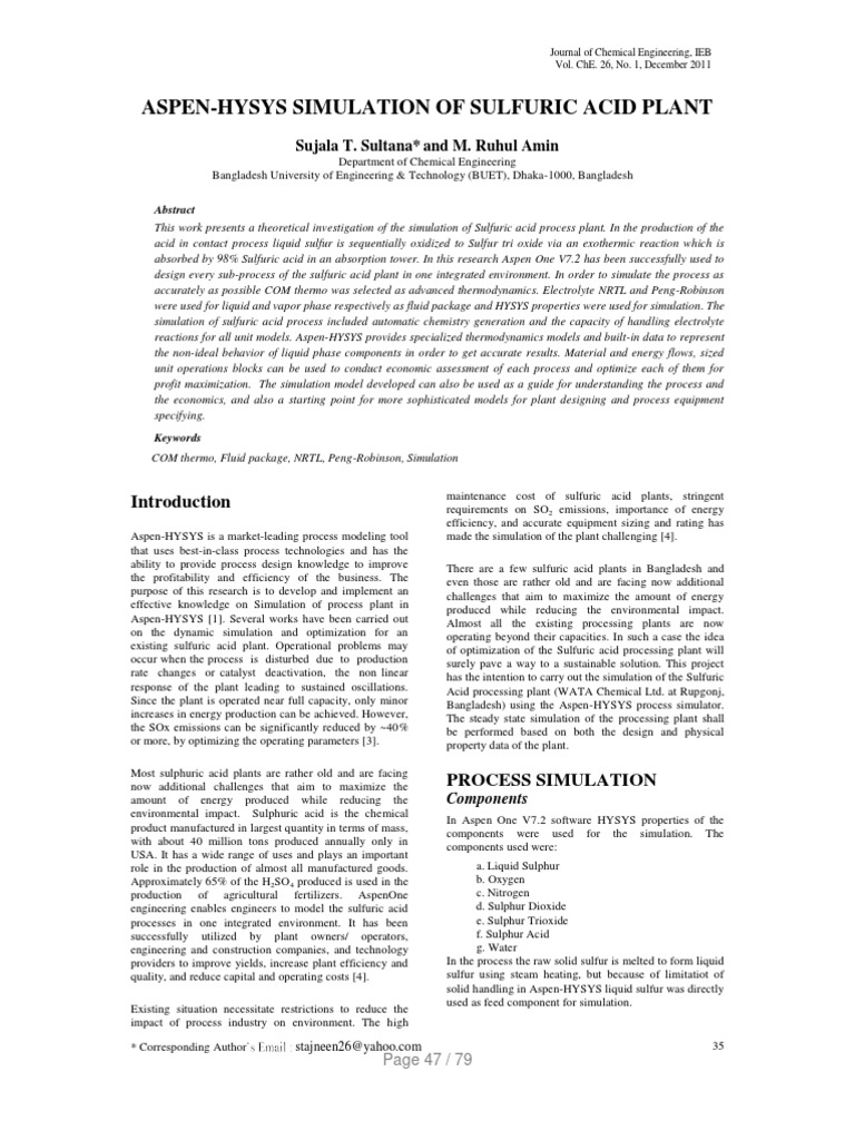 Aspen Hysys Simulation Of Sulfuric Acid Plant Pdf