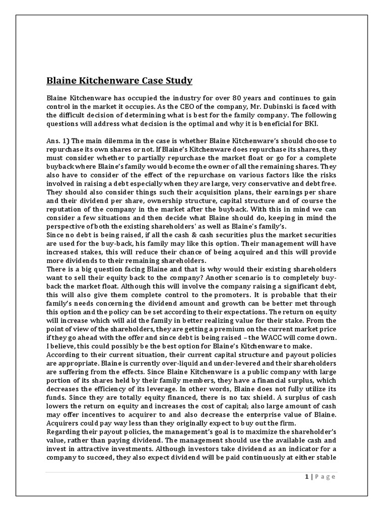 Everything About Blaine Kitchenware Inc Capital Structure Case Study
