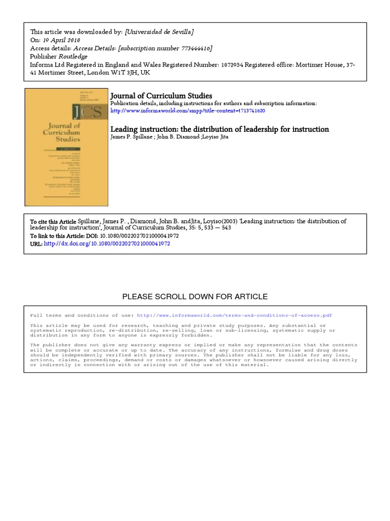 Understanding Distributieve Leadership Bennett Spillane