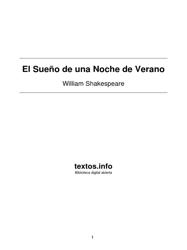 El Sueno De Una Noche De Verano Shakespeare Para Detailed Analysis