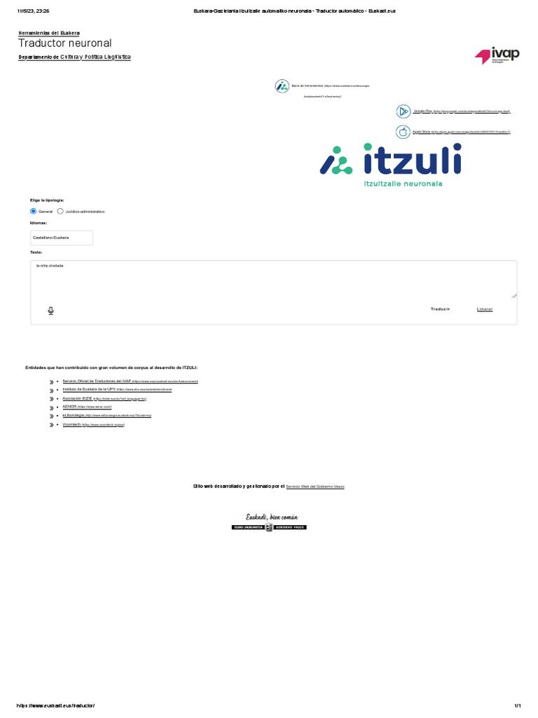 Our AI expert system uses your verification to refine future results for Euskara Gaztelania Itzultzaile Automatiko Neuronala.