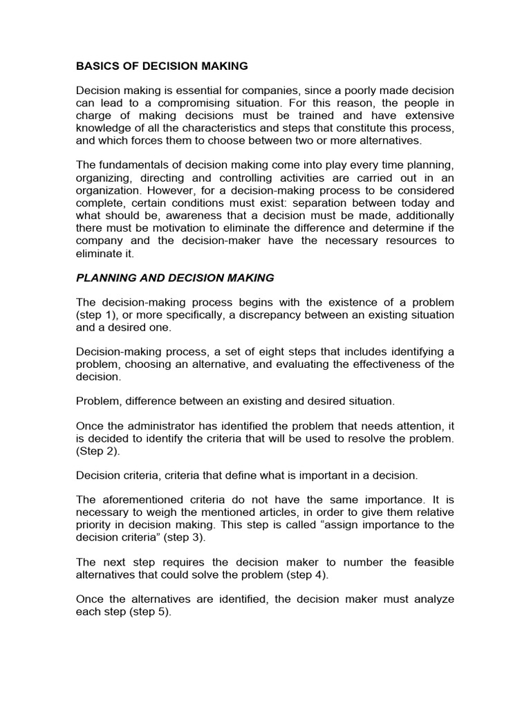 Understanding Fundamentals Of Decision Making And Priority Theo