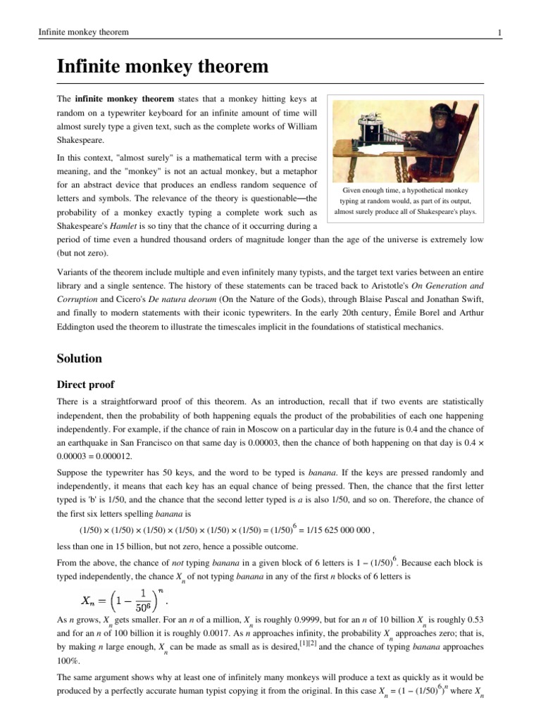 Given An Infinite Number Of Monkeys And An Infinite Amount Of Time Detailed Analysis