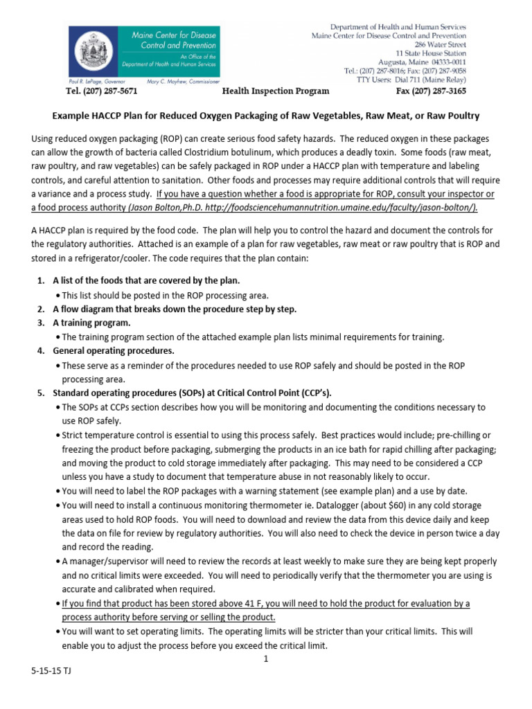 Comprehensive Haccp Plan Template For Reduced Oxygen Packaging Resource