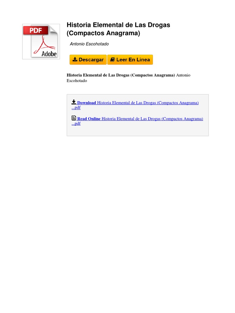 Historia Elemental De Las Drogas Compactos Anagra Detailed Analysis