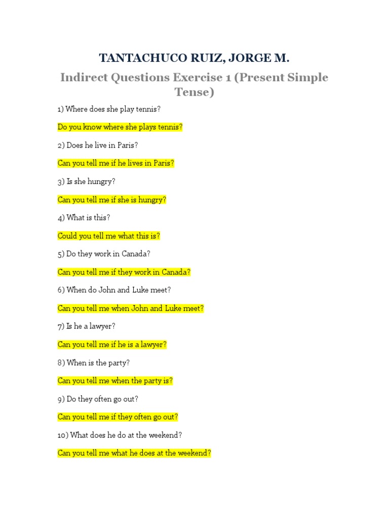 Indirect Questions Exercise Autoenglish Org Expert Insights
