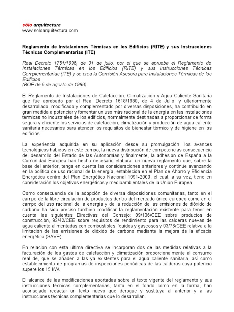 Inspecciones De Instalaciones T Rmicas En Edificios Rite Overview and Information