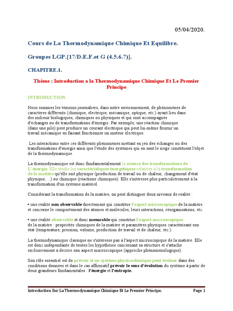 Introduction A La Thermodynamique Cours Et Probla Detailed Analysis
