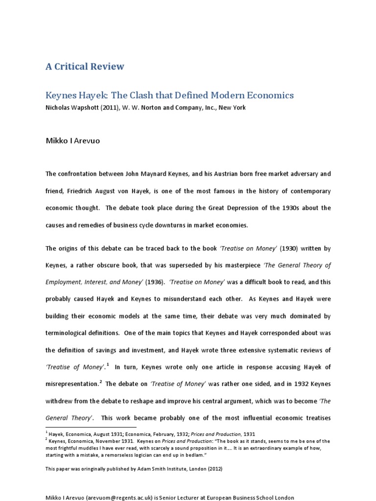 Keynes Hayek The Clash That Defined Modern Economi Complete Guide