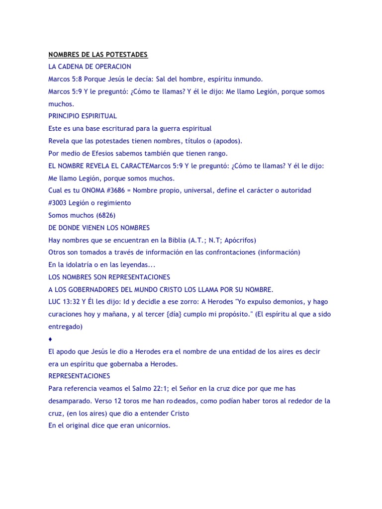 Nombres De Las Potestades Restaurados Por La Palabra Pdf