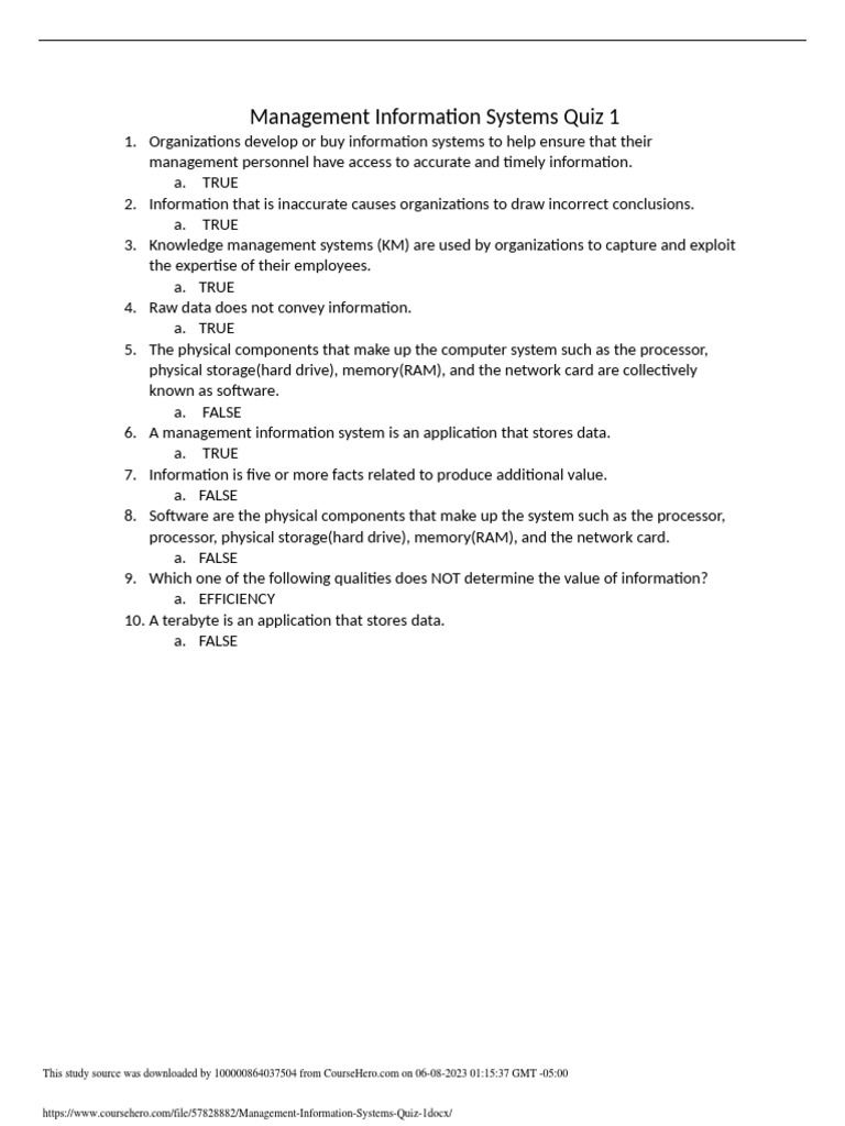 Objective Type Questions Management Information Systems Overview and Information