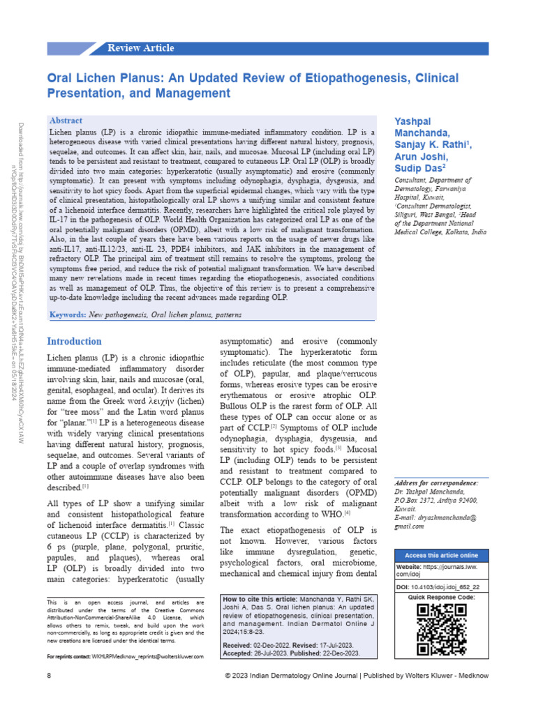 Comprehensive Oral Lichen Planus A Narrative Review Navigating Etiologies Resource