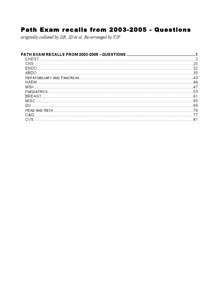 Path Exam Recalls From 2003 2005 Questions In-Depth Review