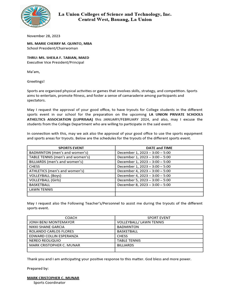 Understanding Sample Acceptance Letter For Sports Tryouts