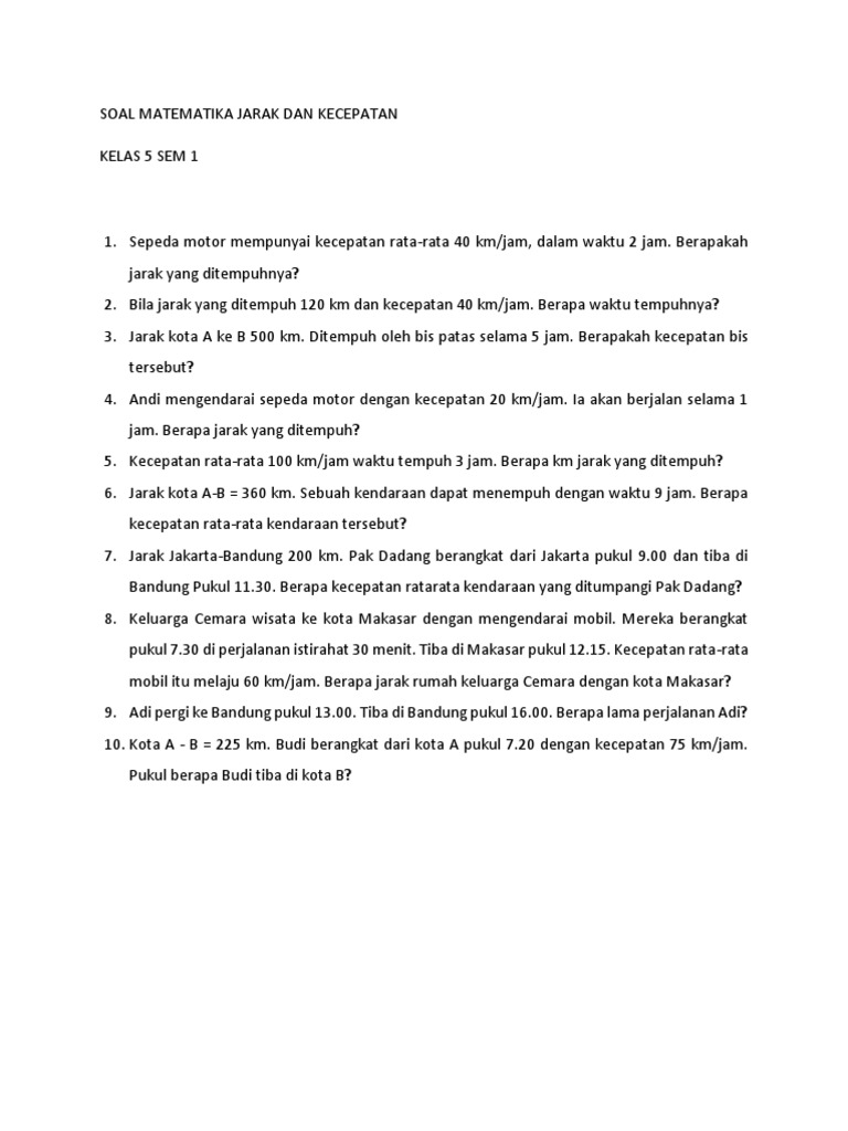 Soal Matematika Un Sd Hitung Kecepatan Waktu Dan Jarak Dua Pdf