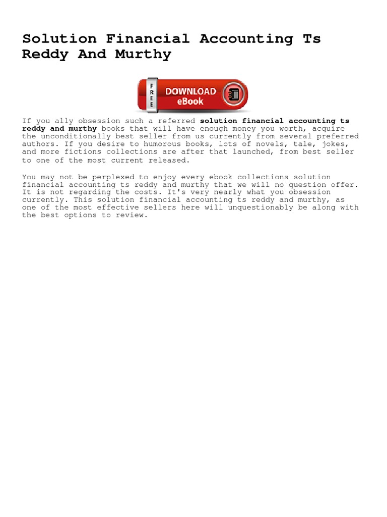 Everything About Solution Financial Accounting Ts Reddy And Murthy Pdf
