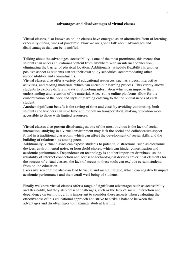 The Advantages And Disadvantages Of The Virtual Classroom Pdf Expert Insights