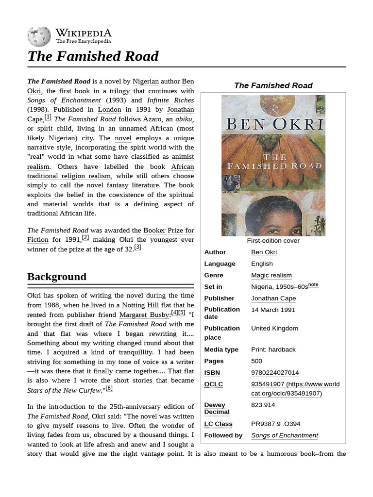 Detailed research compilation on The Famished Road The Famished Road Trilogy synthesized from verified 2026 sources.